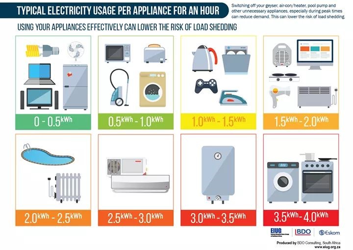 รูปที่ 1 การใช้พลังงานของเครื่องใช้ไฟฟ้าในครัวเรือน (อ้างอิงจาก eiug.org.za)
